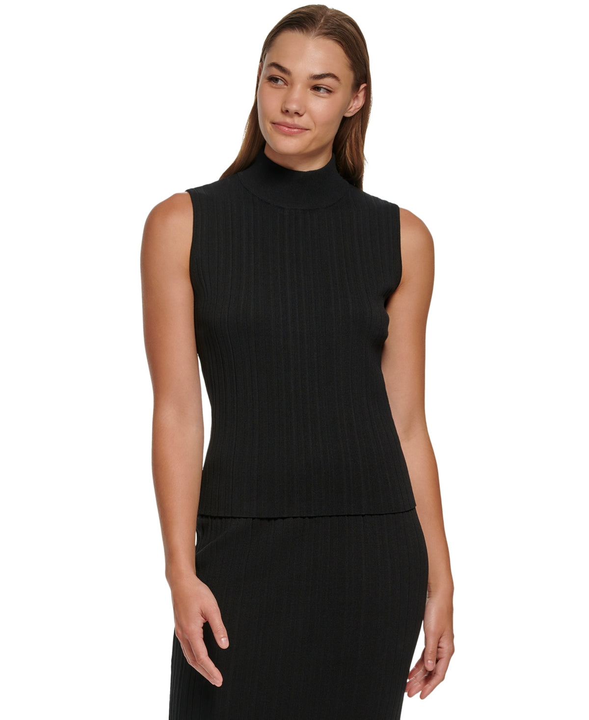 Calvin Klein Suéter Feminino Sem Mangas com Gola Redonda e Canelado Preto Tamanho Médio
