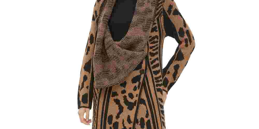 Calvin Klein Feminino Gola Asa Animal Print Manga Longa Aberta Cardigan Suéter Marrom Tamanho X-S