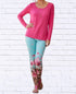 Introducing the Daniela Sienna Print Stretch Knit Leggings by Calypso, crafted for a bold and contemporary look. These skinny leg leggings offer a high-rise slim fit and are made from 100% polyester Bon Bon fabric. With a striking turquoise pattern, they feature a comfortable pull-on closure for easy wear. Care instructions include hand washing and line drying, making them a vibrant addition to your boho chic spring wardrobe.