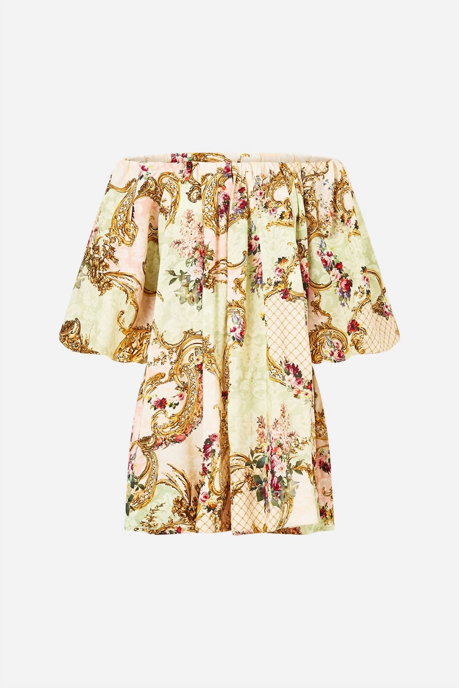 O tipo de vestido fácil e elegante que você vai usar durante toda a estação. Descubra o Vestido Mini Ombro a Ombro Bufante da Camilla, uma peça marcante que personifica a elegância majestosa com inspiração nos interiores do Palácio de Queluz. Este vestido deslumbrante apresenta mangas bufantes arrojadas a três quartos, bainha elástica e gola elástica para maior conforto. Confeccionado em uma luxuosa mistura de 80% linho e 20% seda, oferece respirabilidade e uma estética atemporal. Desfrute da praticidade dos bolsos e do fecho feminino, com instruções de cuidado que recomendam lavagem a seco para manter seu padrão intrincado.