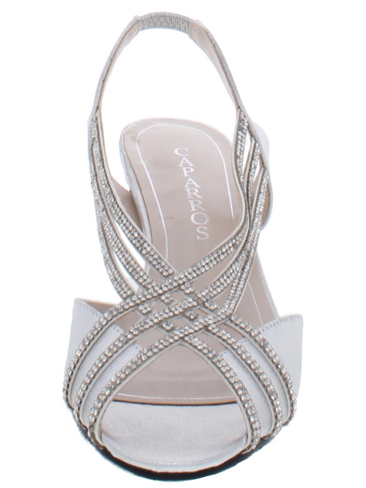 Sandálias de salto baixo femininas Caparros Twilight II com strass e salto baixo, tamanho 7,5 M, prateadas