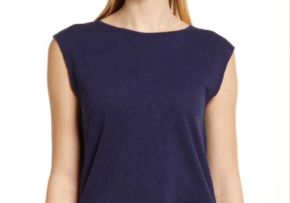 Tecido de algodão | Mangas curtas | Amarração nas costas | Cor azul marinho | Tamanho extrapequeno | Design versátil | Ajuste confortável | Lavável à máquina | Material respirável | Vendido na Nordstrom