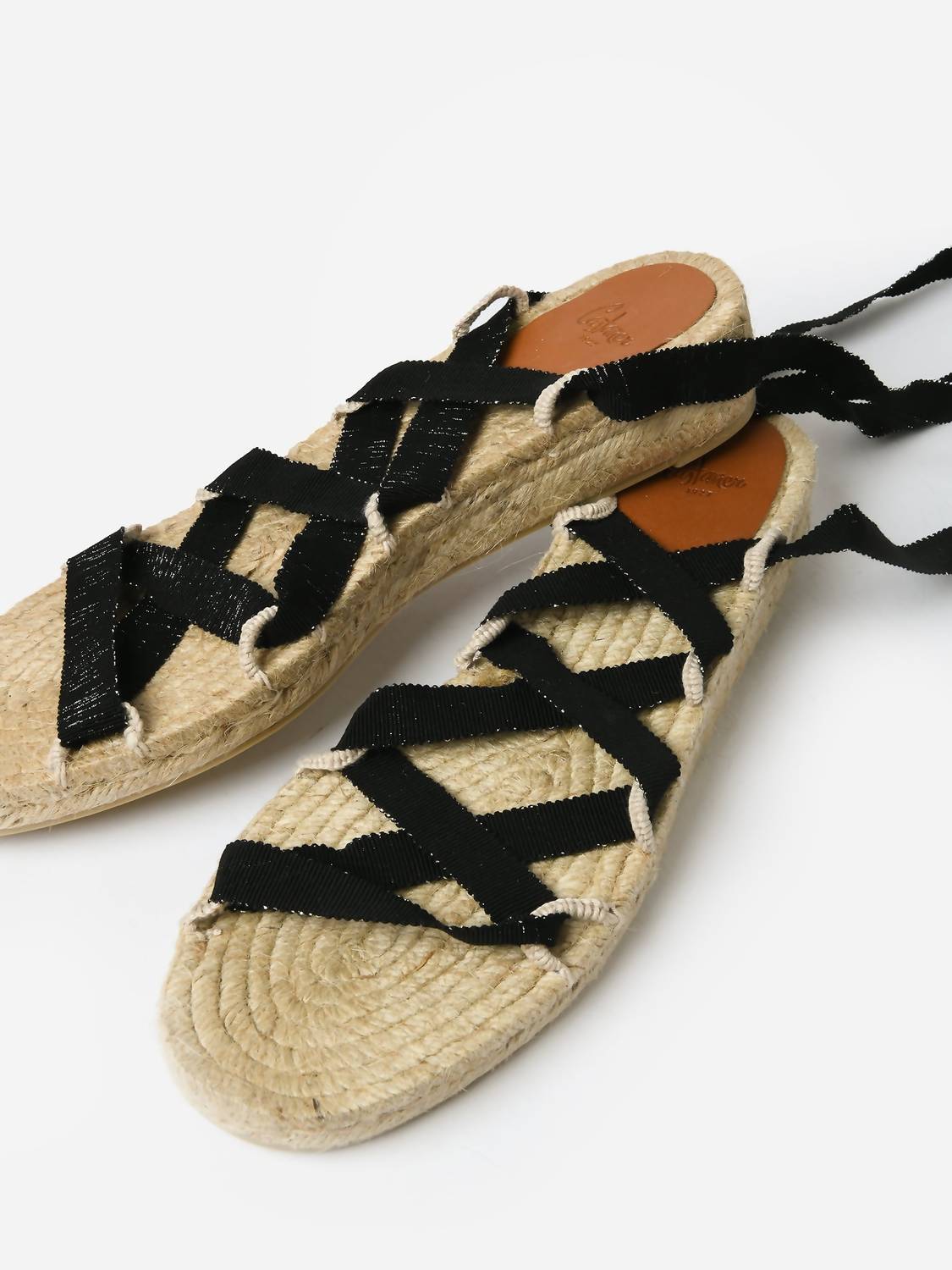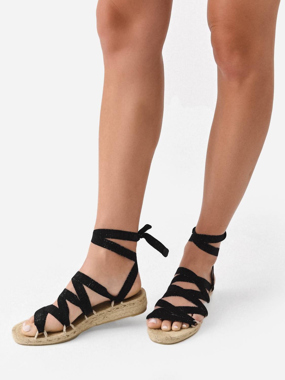 Elegantes e confortáveis, estas alpargatas têm tudo. Uma sandália estilo alpargata com bico redondo aberto, tiras cruzadas, tiras autoajustáveis ​​no tornozelo, salto de juta trançada e solado de borracha vulcanizada. O salto mede 3,8 cm.