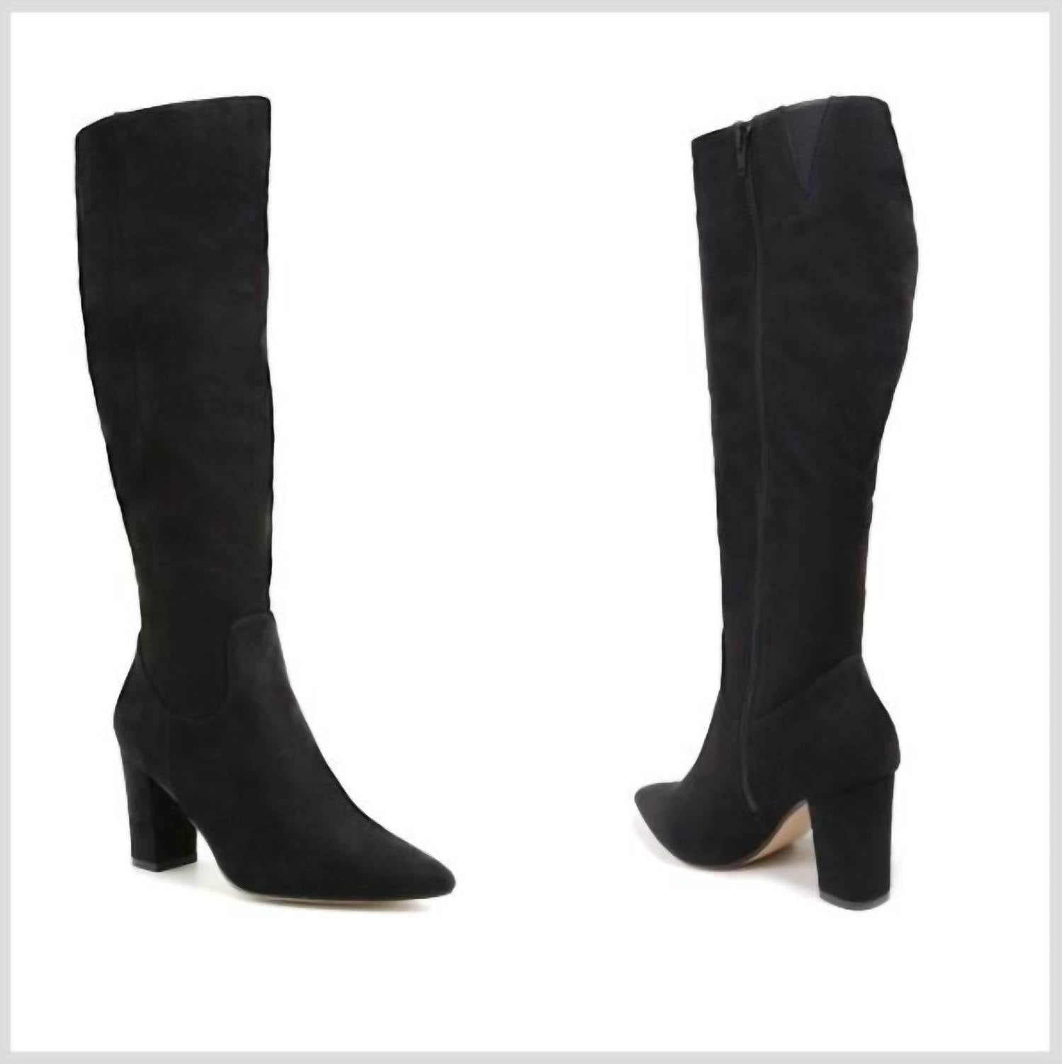 A stylish boot with a comfortable fit and the perfect amount of height. These classic boots are the perfect addition to any outfit and can be worn season after season. Block heel Pointed toe Side zip closure 15.75" shaft height 3.25" block heel Fabric upper, manmade lining and sole