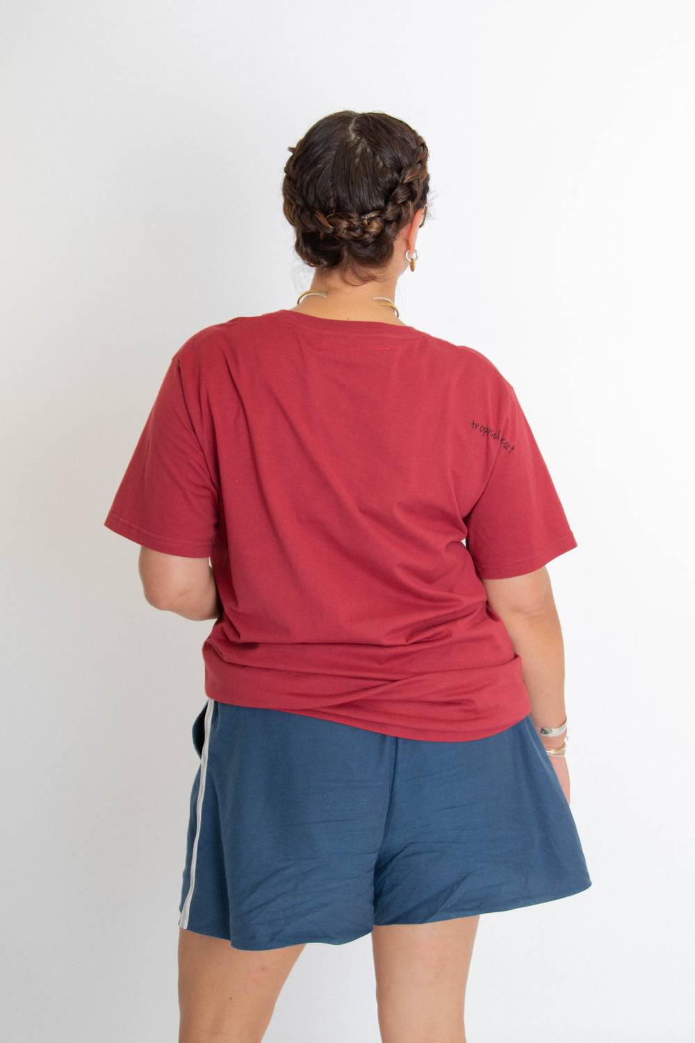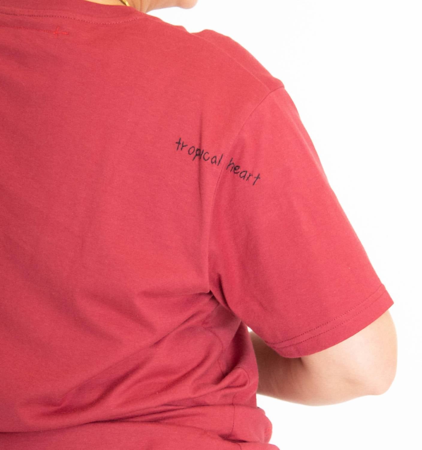 Esta camiseta clássica de manga curta será sua peça essencial nesta temporada e nas próximas. Apresentamos a Madre Tee da Cats with a Heart, uma camiseta de manga curta em um tom vinho intenso que adiciona um toque de sentimento ao seu estilo do dia a dia. Confeccionada em algodão macio, ela apresenta bordados exclusivos costurados à mão com fio vermelho sutil para um toque texturizado e significativo. Esta peça é desenhada com uma gola redonda versátil e um fecho prático. Cada camiseta é criada com propósito, apoiando iniciativas de emprego justo e desenvolvimento de habilidades no México.