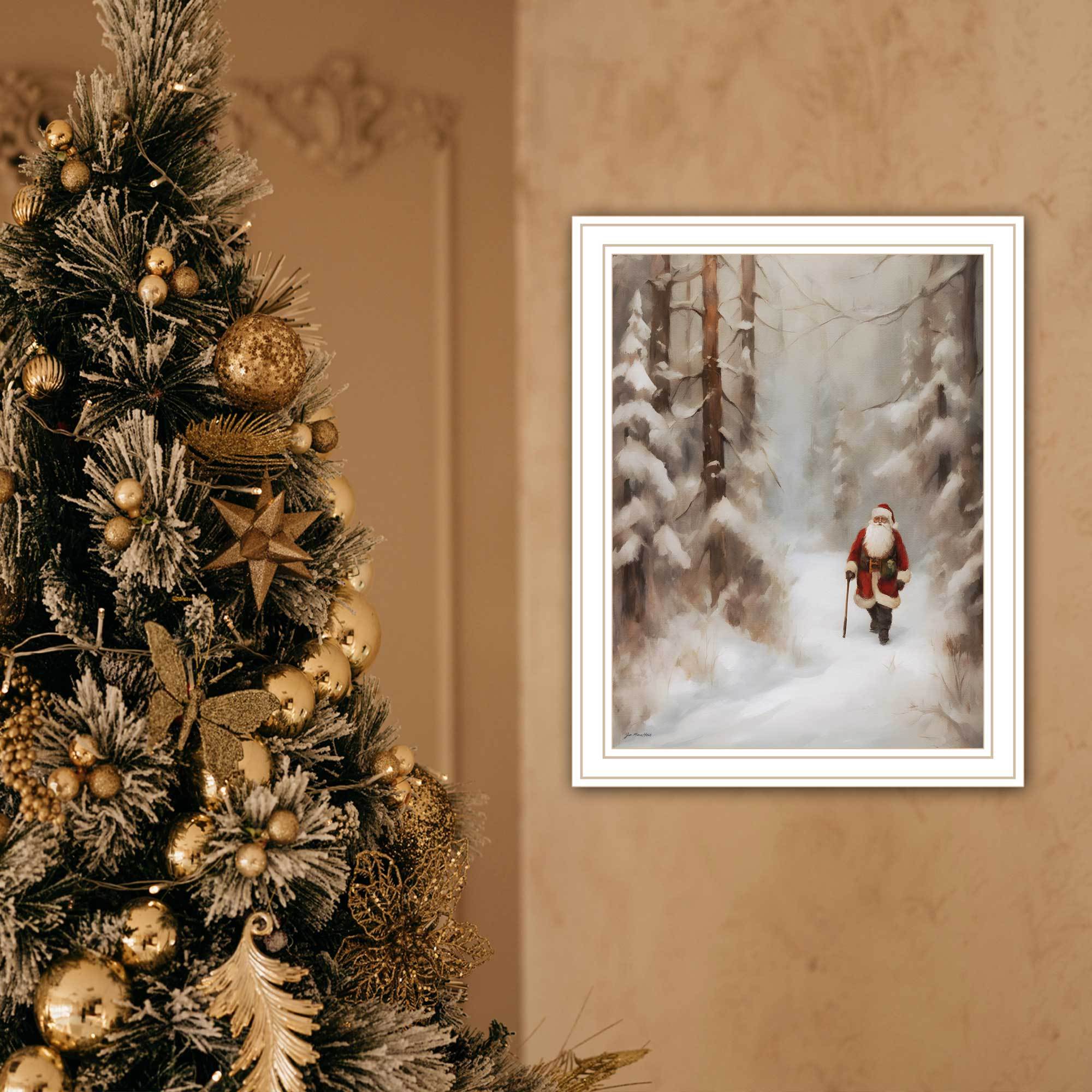 Trendy Decor 4U “Santa’s Winter Stroll” White Framed Wall Art by Jo Moulton
