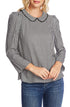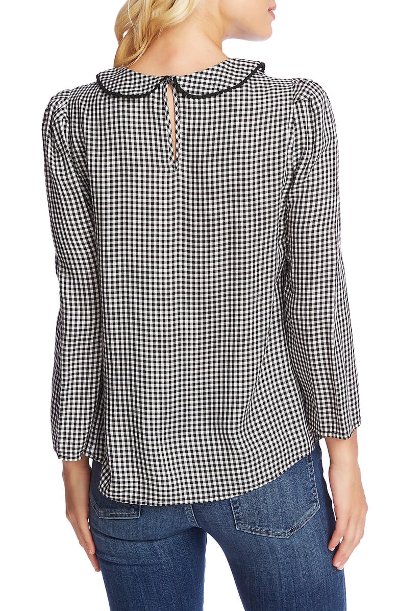 Blusa xadrez feminina CeCe com manga comprida e gola Peter Pan, preta, tamanho pequeno