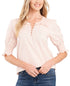 Cheio de bolinhas | este top texturizado da CeCe é feito de algodão confortável e finalizado com mangas bufantes divertidas com punhos românticos franzidos. | Comprimento aproximado; 25 | Gola redonda; fechos frontais com botões na metade da carcela | Textura de bolinhas com clipe; babados e franzidos nos ombros frontais | Mangas bufantes na altura do cotovelo; punhos franzidos e franzidos | 100% algodão