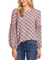 Top feminino elegante xadrez com manga bufante e estampa lanterna CeCe, vermelho, tamanho grande