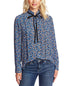 Blusa feminina CeCe com decote em V e estampa floral, tamanho grande, azul