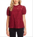 Top feminino CeCe com decote ilusão e manga curta floral, vermelho, tamanho X-G