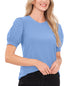 Top feminino CeCe com manga bufante e estampa de mídia mista, azul, tamanho médio