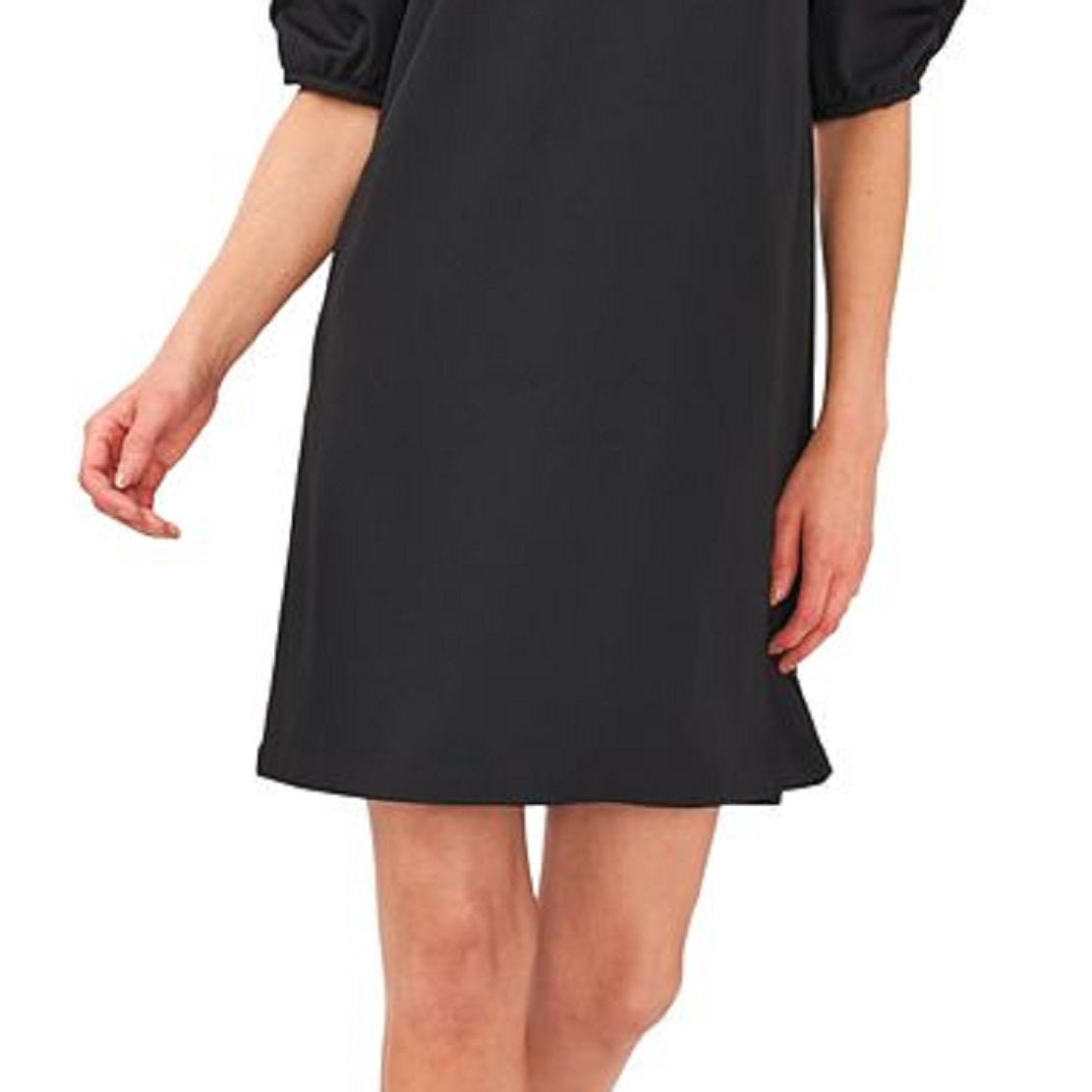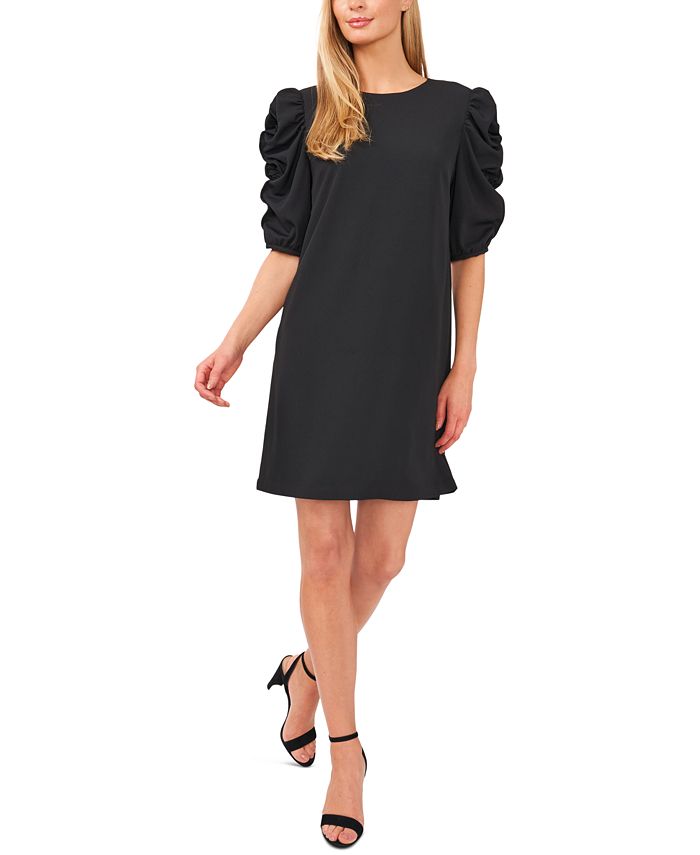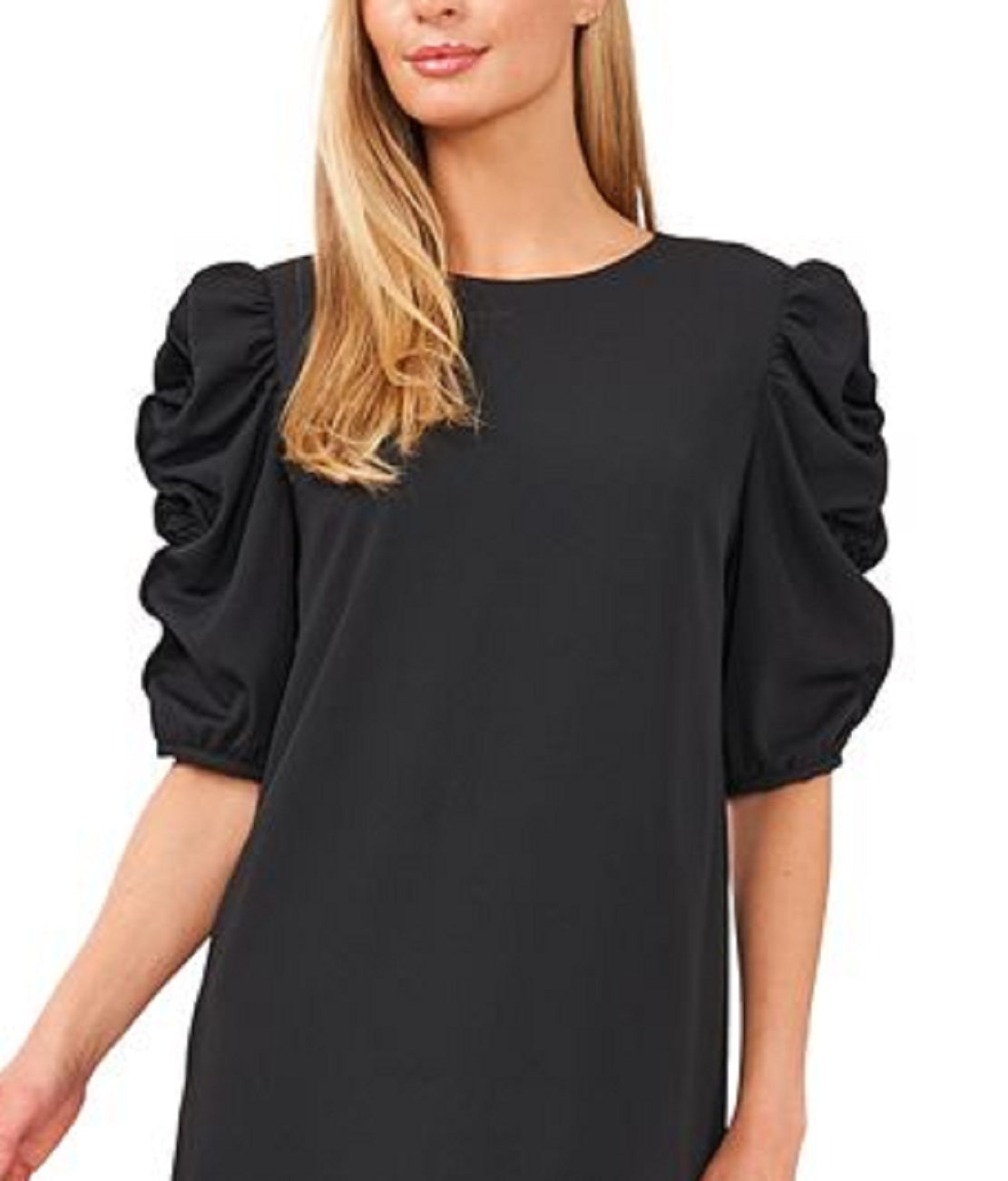 Vestido feminino CeCe com mangas franzidas, preto, tamanho grande