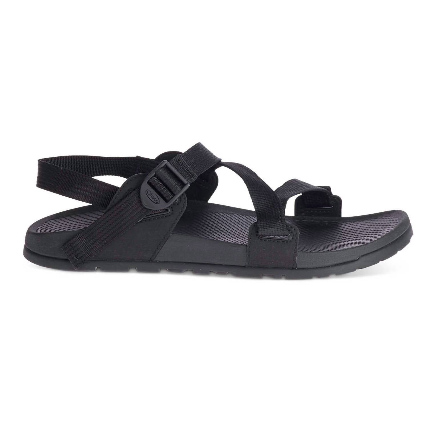 Step into ultimate comfort with the Men's Lowdown Sandal by Chaco, designed for a travel-ready lifestyle. This black sport sandal features adjustable polyester jacquard webbing with injection molded ladder lock buckle, a low-profile open toe, and a flat heel under 1 inch. Engineered with a high-rebound EVA midsole and the signature LUVSEAT™ footbed, it promises healthy alignment and all-day comfort. The non-marking ChacoGrip™ rubber outsole with 3.0mm lug depth ensures reliability.