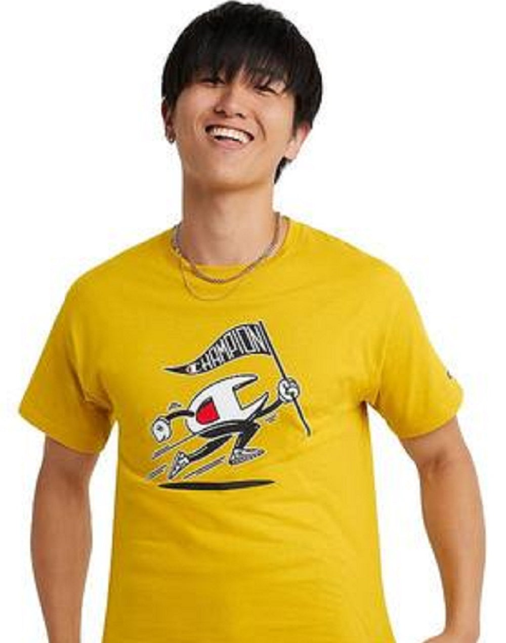Camiseta Champion Masculina Classic Standard Fit Logo Graphic, Amarela, Tamanho Grande