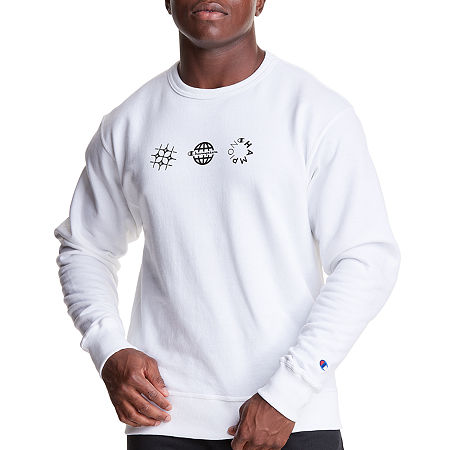 Reduza a formação de bolinhas e o encolhimento com este moletom de desempenho da Champion | com detalhes de costura extras para maior durabilidade. | Ajuste clássico | Gola redonda | Logotipos na frente e na manga | Redução de bolinhas; redução de encolhimento | Algodão/poliéster