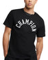 Camiseta masculina Champion com estampa de logotipo e ajuste padrão, preta, tamanho médio
