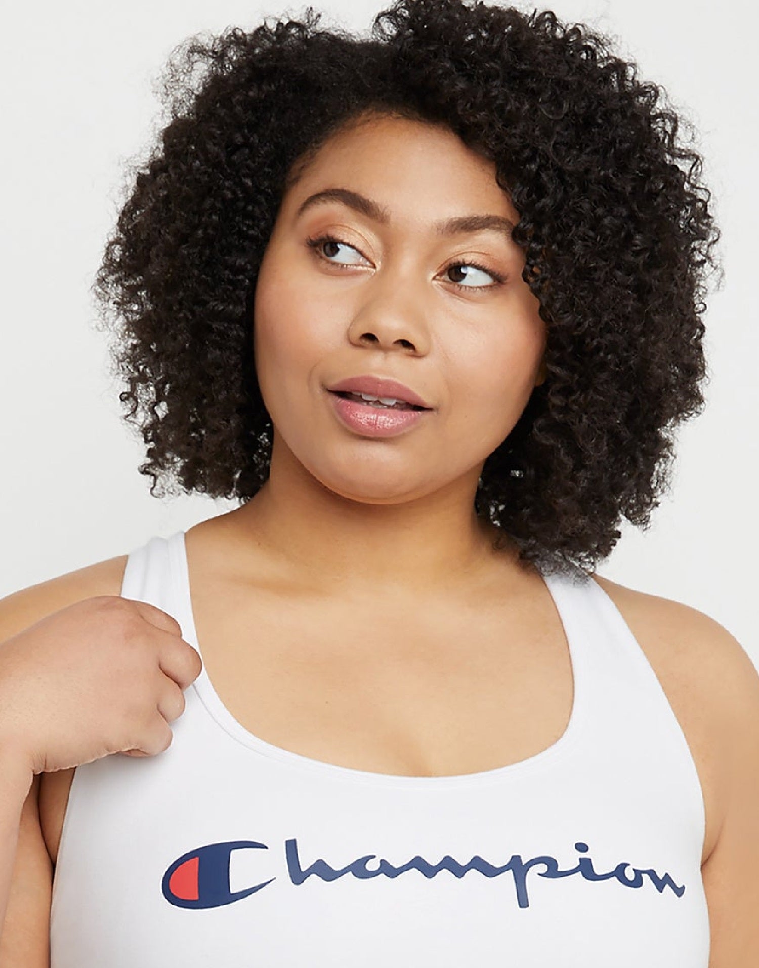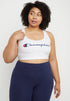 Compre um item essencial para sua rotina de exercícios com este sutiã esportivo plus size da Champion | com tecnologia antissuor. | Design nadador | Sutiã esportivo de médio impacto, ideal para musculação e aeróbica leve | Absorção para controle de umidade | Estilo pulôver; estampa do logotipo no peito | Algodão/elastano