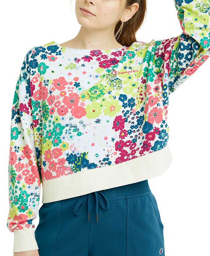 Uma estampa floral vibrante chama a atenção neste suéter aconchegante com decote cru da Champion. | Importado | Gola redonda crua | | Fale com um estilista e receba dicas gratuitas de especialistas online ou em lojas para o seu guarda-roupa | Casa e muito mais. Reserve agora |