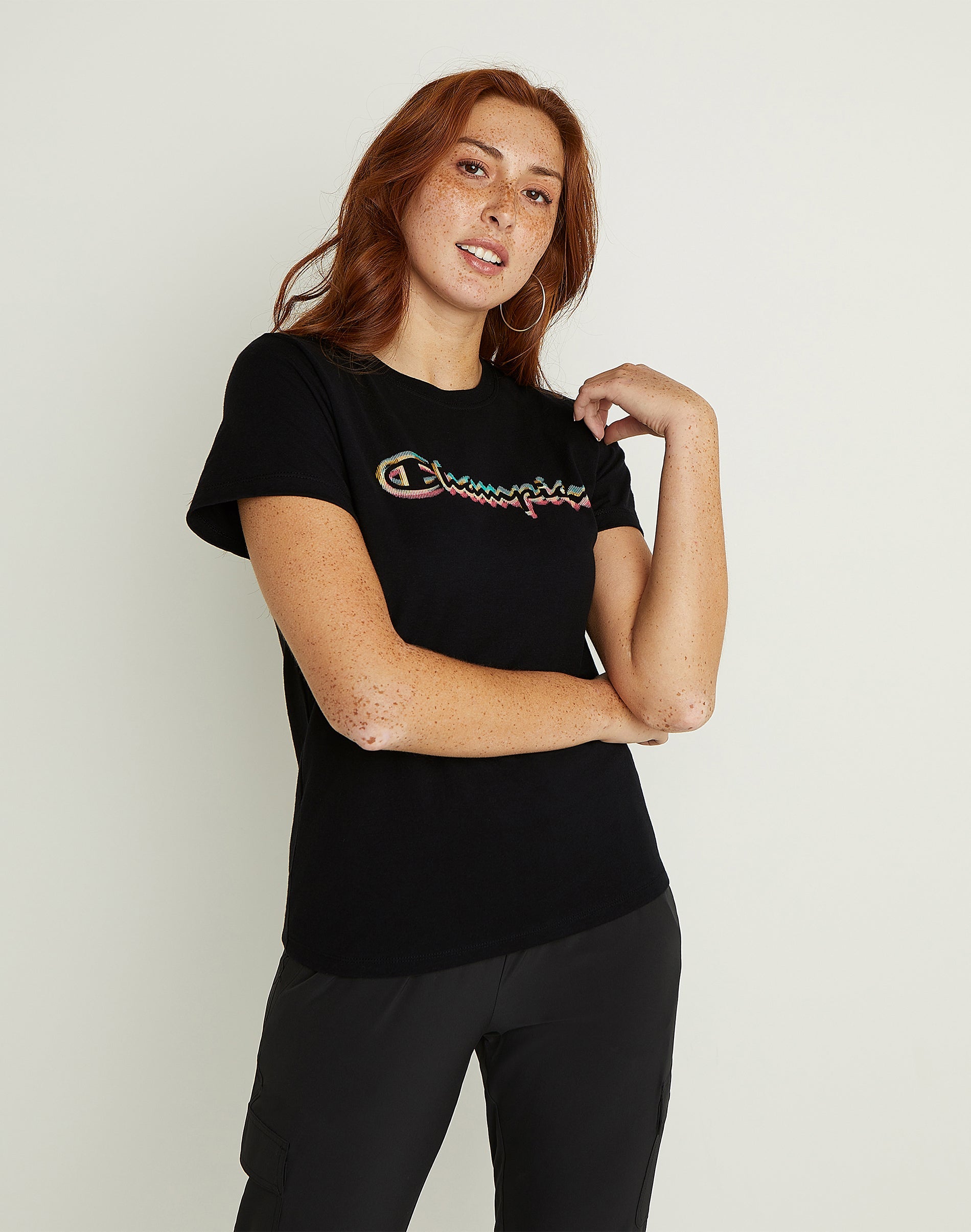 Ask a question about Camiseta Champion Feminina Classic Logo Preta Tamanho X P