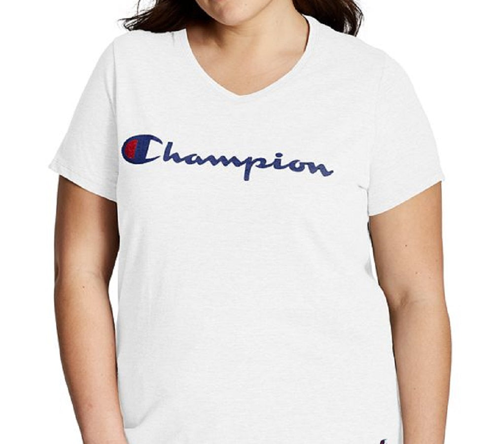 Camiseta feminina Champion com logotipo, branca, tamanho 2X