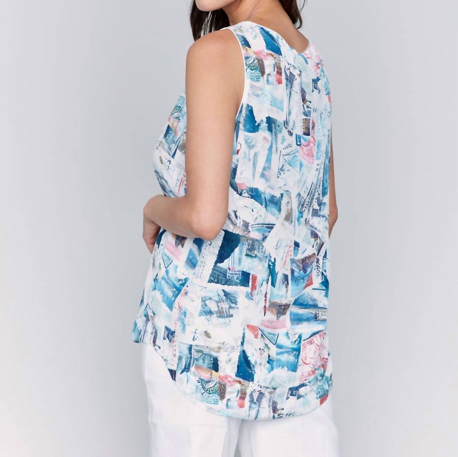 The Powder Pull On Tank by Charlie B is a chic and lightweight option perfect for any wardrobe. This sleeveless top is crafted from 100% cotton, ensuring comfort and breathability. Featuring a patterned design in Carte Postal/Post Card, it offers a style that can easily match a variety of outfits. Care instructions recommend hand washing to maintain its quality.