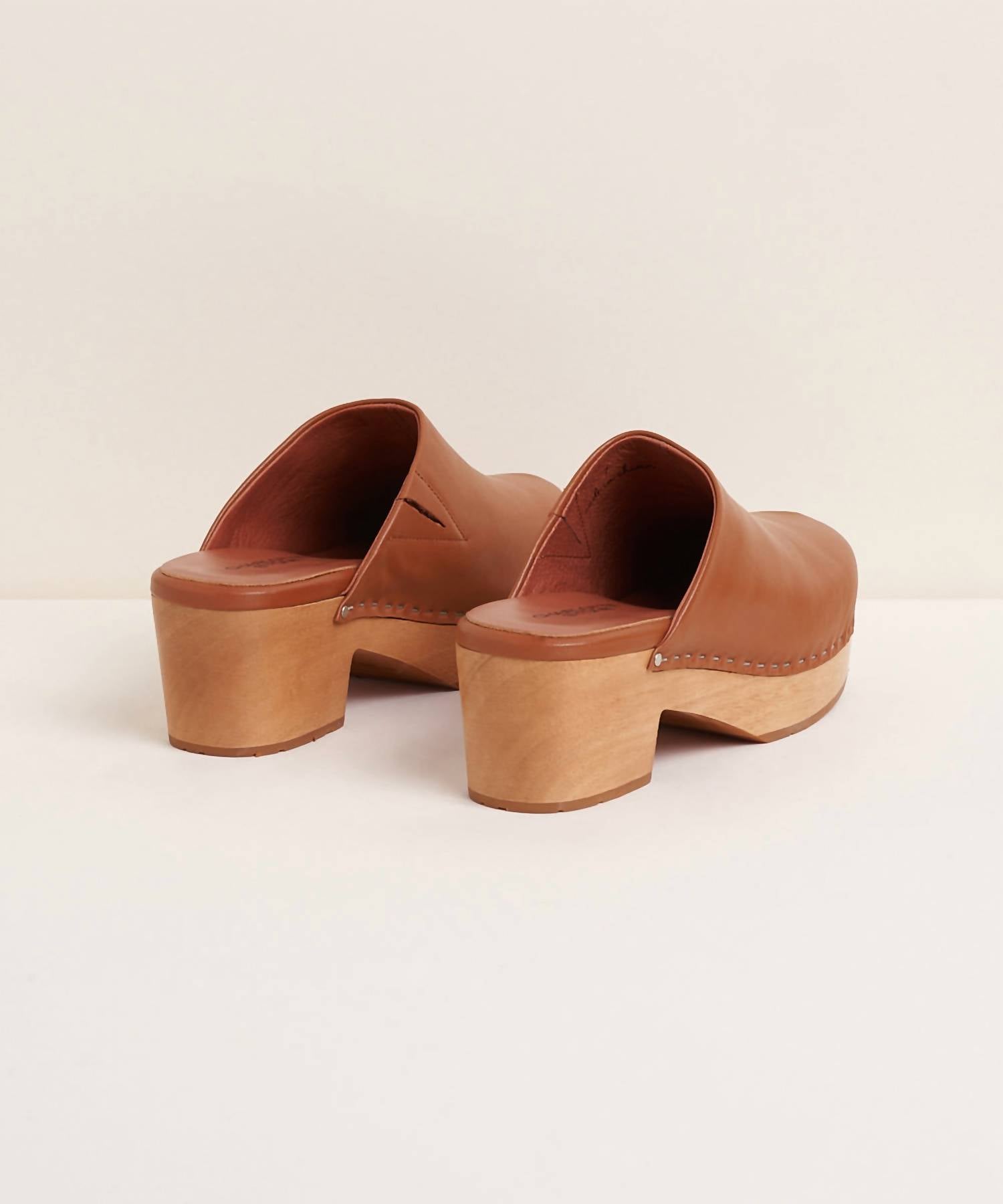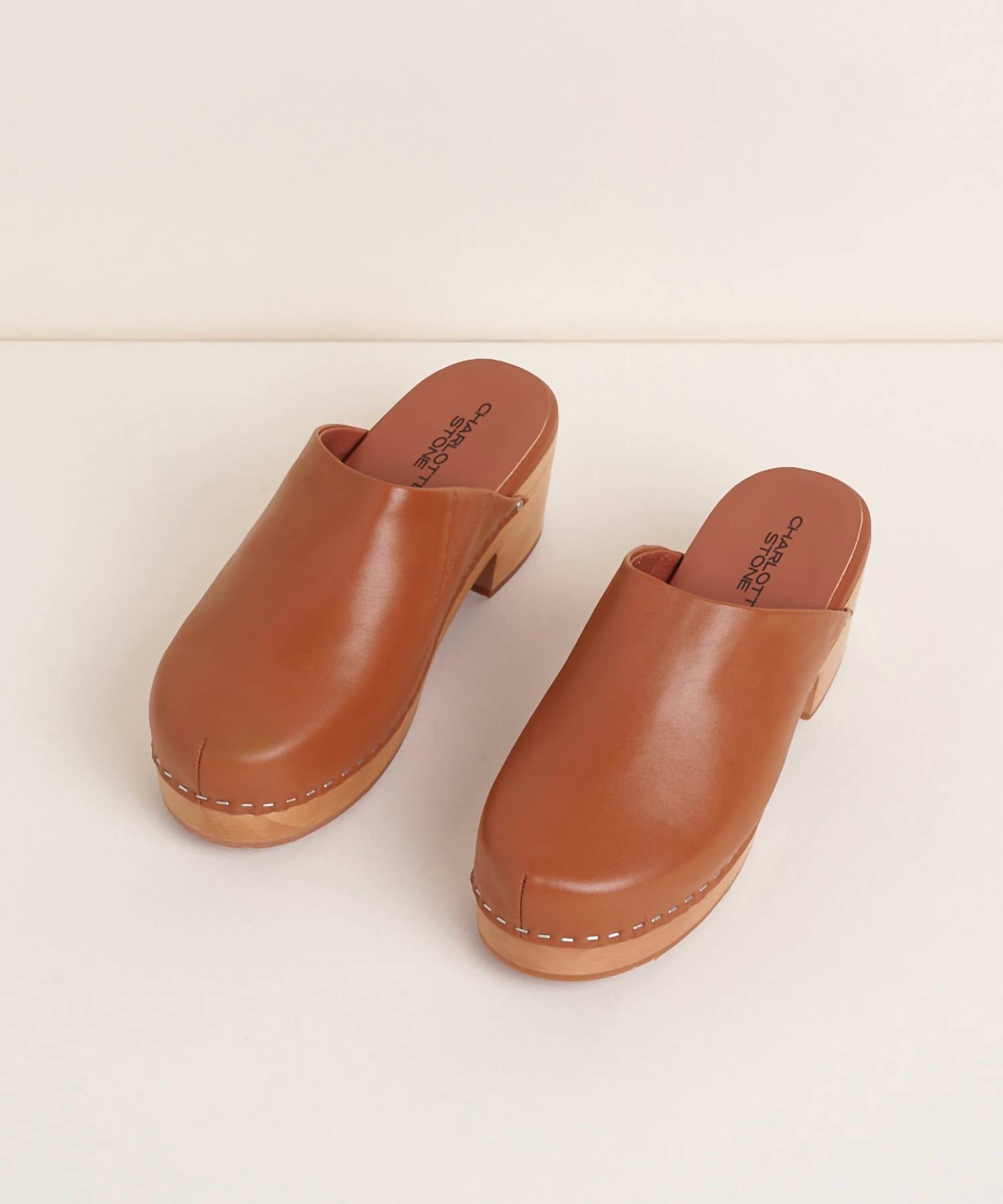 Step into timeless style with the Women's Martino Low Heel Wooden Clogs by Charlotte Stone, crafted from high-quality leather. These brown mules feature a 2.5" block heel and a 1" platform, delivering both comfort and a subtle height boost. Designed for effortless minimalist charm, the round toe design is perfect for spring travel outfits. Embrace comfort with memory foam insoles, wearing true to size for standard B widths, while those between sizes might consider sizing up for the perfect fit.