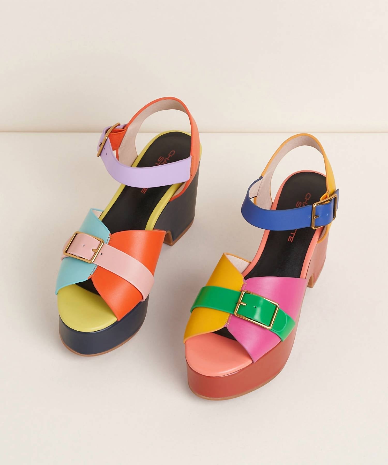 Step up your summer style with the Women's Raf Chunky Platform Sandal by Charlotte Stone in the vibrant Solimar color. This sandal features all-leather uppers, complemented by an adjustable ankle strap and a decorative front buckle, offering both style and comfort. The design boasts an open toe and block heel with a height of 3.5 inches, paired with a 1.5-inch platform to provide a walkable, elevated experience. Perfect for a maximalist vacation look, these sandals are your go-to choice for any occasion, especially those summer holidays.