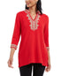 Túnica texturizada feminina Charter Club com manga 3/4, vermelha, tamanho pequeno médio