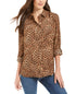 Blusa feminina com estampa animal Charter Club, marrom, tamanho grande