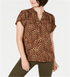 Camisa feminina de manga curta com estampa animal Charter Club, marrom, tamanho pequeno