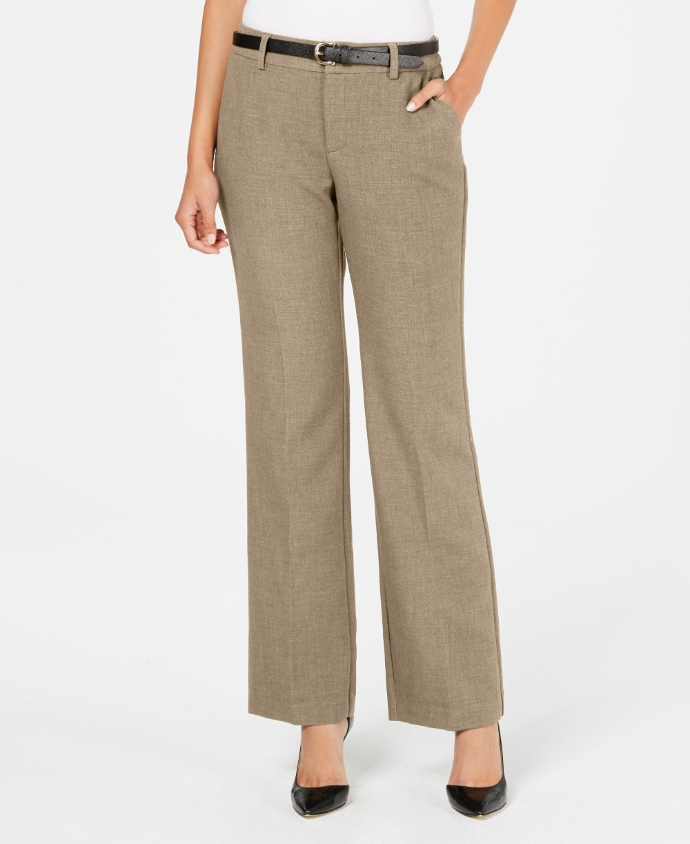 Calças femininas com cinto e cintura alta Charter Club, bege, tamanho 6, pequena