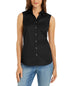 Blusa feminina Charter Club com botões frontais, preta, tamanho 12