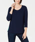Charter Club Top Feminino Contraste Plissado Costas Caneladas Azul Tamanho P