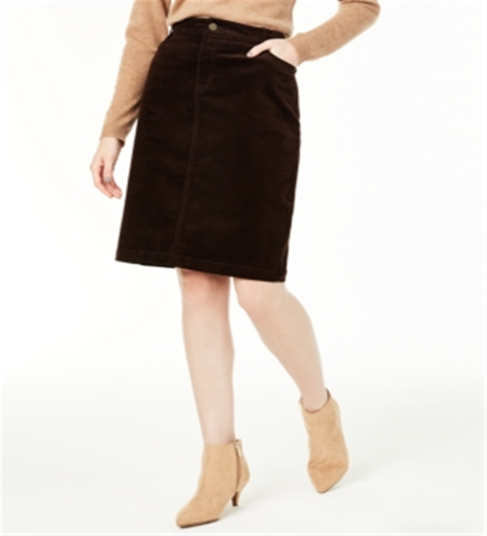 Saia de veludo cotelê com controle de barriga Charter Club feminina, marrom, tamanho 10