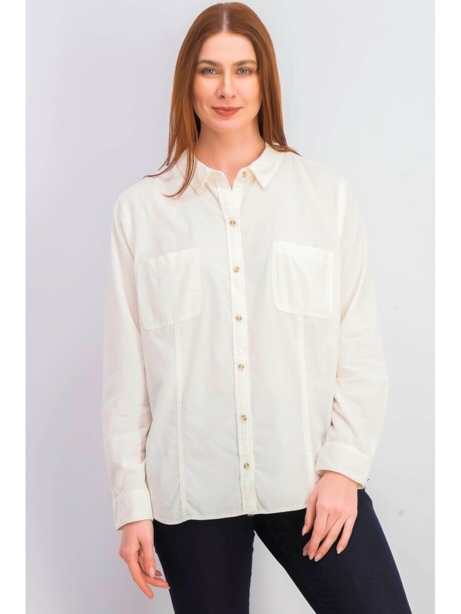 Charter Club Blusa feminina de veludo cotelê com mistura de algodão e manga comprida, com botões, branca, tamanho pequeno grande