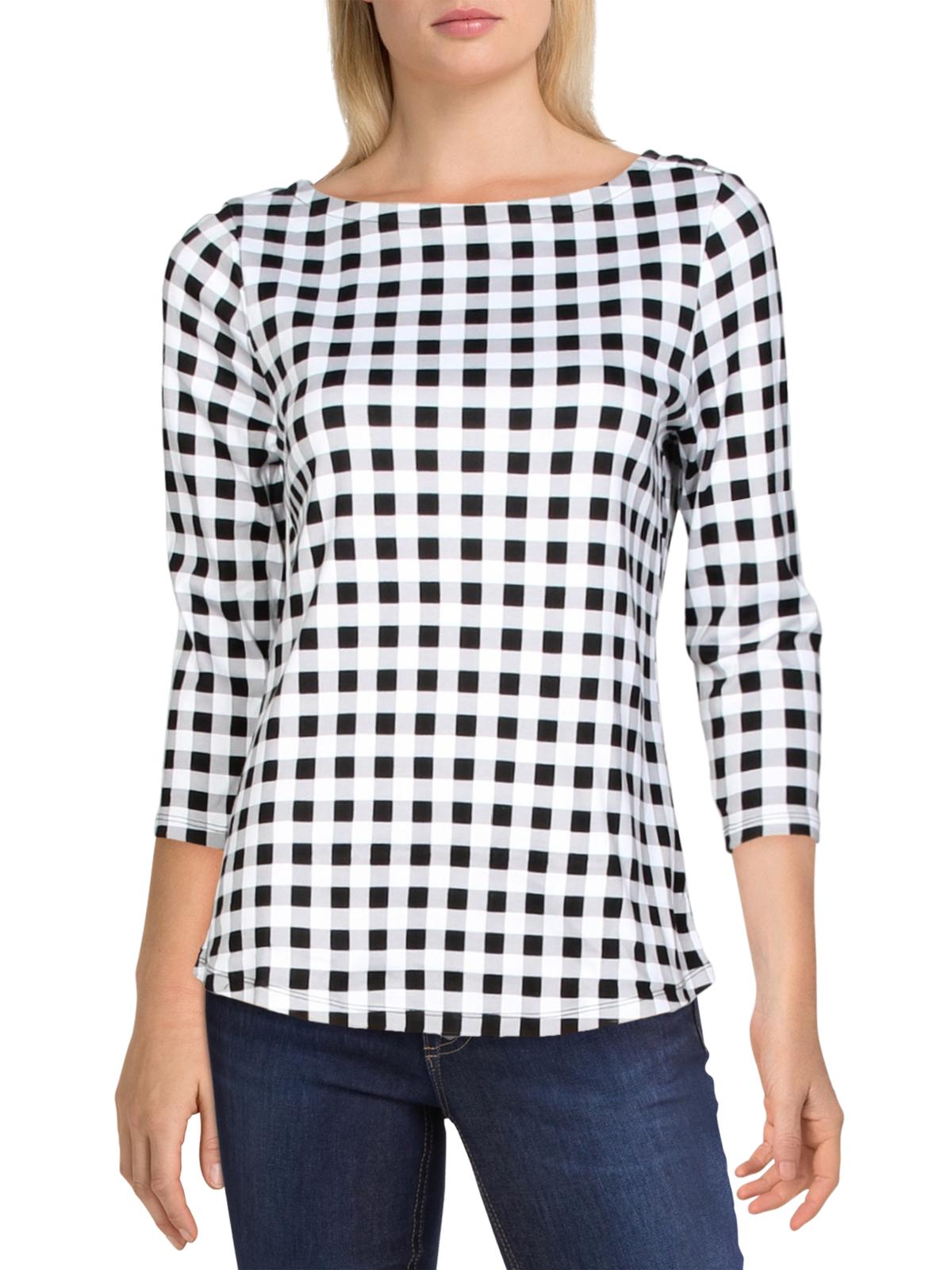 Charter Club Blusa feminina de algodão com estampa xadrez e gola canoa, preta, tamanho médio