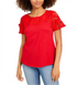 Camiseta feminina Charter Club de algodão com renda e detalhes em vermelho, tamanho grande