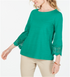 lindos detalhes em renda em cada manga 3/4 deste pequeno top do Charter Club | feito em algodão macio e finalizado com um elegante decote canoa