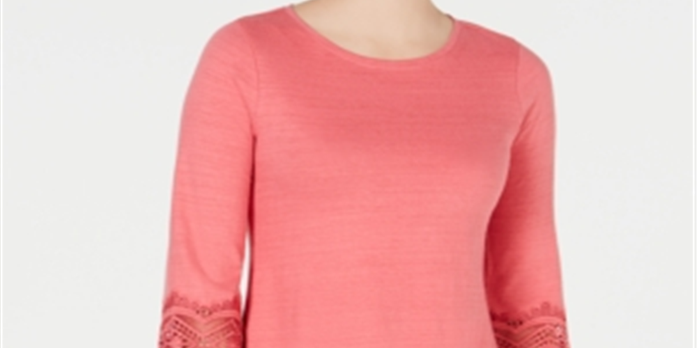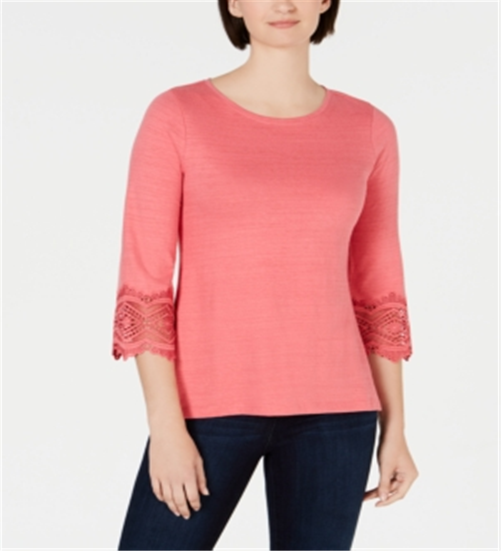 Top feminino Charter Club com acabamento em renda de algodão rosa, tamanho pequeno G