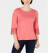 Lindos detalhes em renda em cada manga 3/4 deste top pequeno da Charter Club | feito em algodão macio e finalizado com um elegante decote canoa. | Fica no quadril; aprox. 27 de comprimento | Projetado para se ajustar e valorizar pessoas de 1,62 m ou menos | Decote canoa | Mangas 3/4 com acabamento em renda |