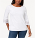 Top feminino Charter Club com acabamento em renda de algodão, branco, tamanho pequeno G