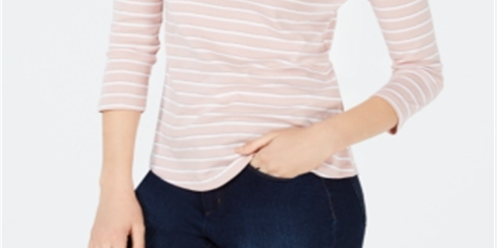 Charter Club Blusa feminina listrada de algodão com decote canoa, rosa, tamanho pequeno médio