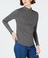 Camiseta feminina de algodão listrada com gola alta Charter Club, cinza escuro, tamanho médio