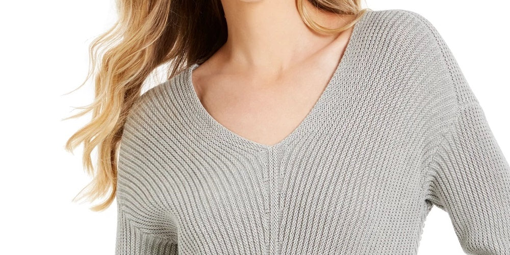 Suéter feminino Charter Club de algodão texturizado com decote em V, cinza, tamanho XX-G