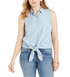 Camisa feminina sem mangas Charter Club de algodão com bainha amarrada, azul, tamanho 10