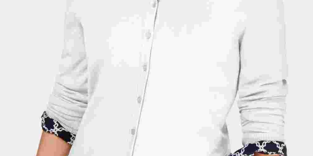 Cardigan feminino com gola redonda Charter Club, branco, tamanho pequeno e pequeno
