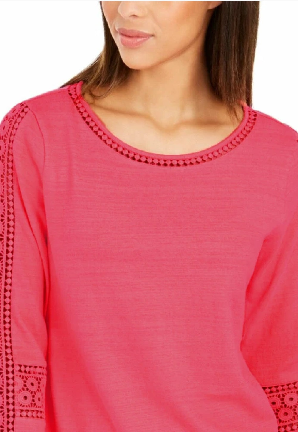 Top feminino de crochê com detalhes, rosa, tamanho pequeno, Charter Club