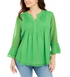 Charter Club Blusa feminina com babados duplos e pregas lisas, verde, tamanho extragrande