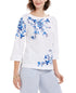 Blusa feminina bordada com mangas divididas Charter Club, azul, tamanho X-S